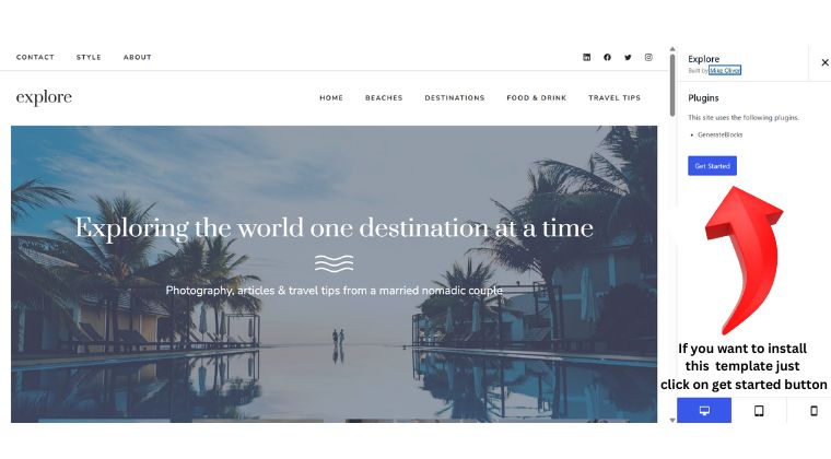 If you’re satisfied with the design, simply click on “Get Started” and follow the on-screen instructions. GeneratePress will automatically import your selected template from the Site Library, and within a few moments, it will be ready to use on your WordPress website.